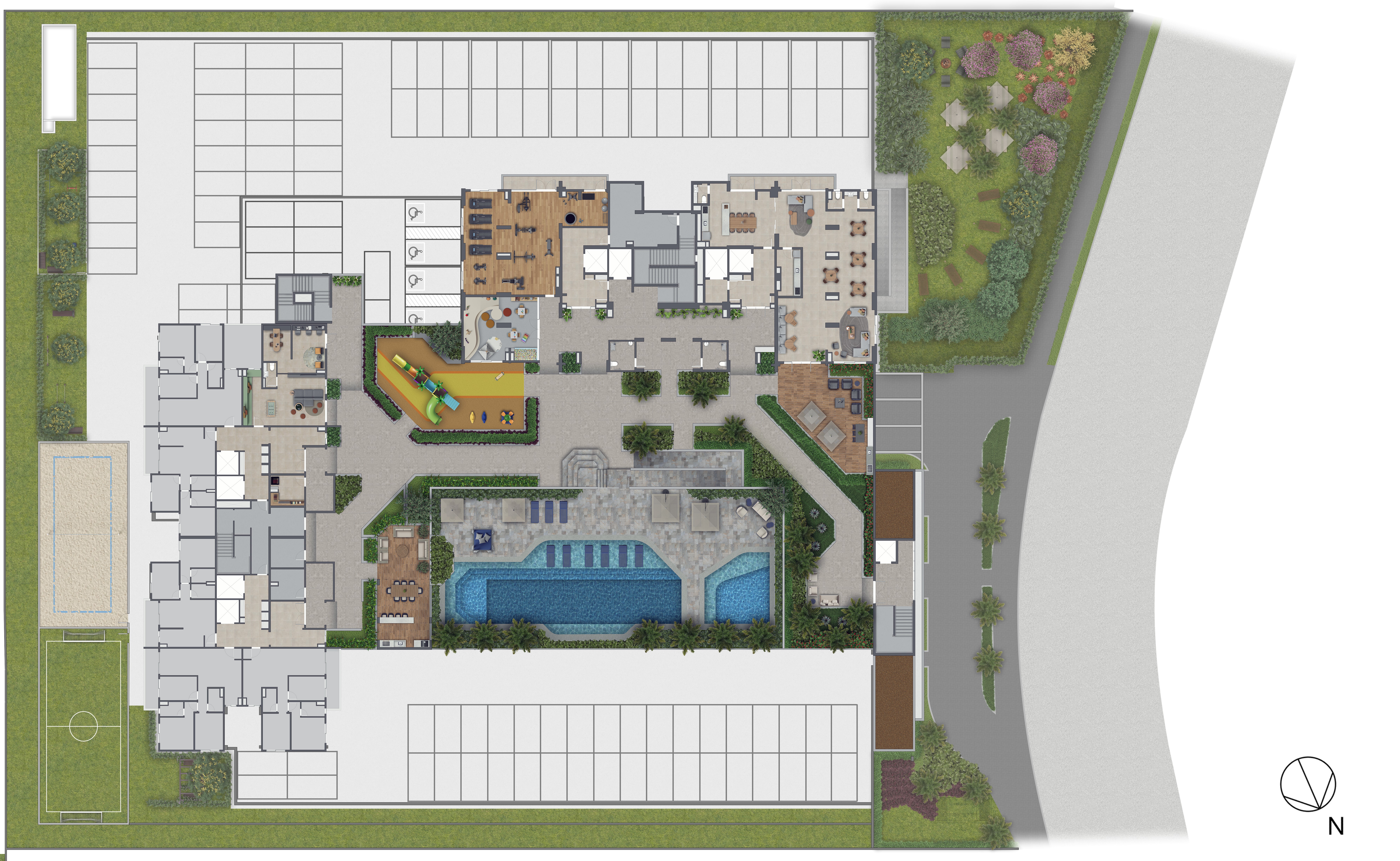 Um residencial dinâmico com mais de 7 mil m² de terreno e mais de 20 itens de
